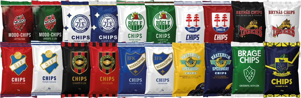 Beställ hem en låda med chips från din favoritklubb -> 5 kr per påse går till klubben.